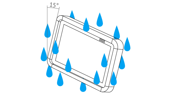 Защита от вертикально падающих капель воды при условии, что прибор отклонен от вертикали в любую сторону на 15° включительно (продолжительность испытаний — 2,5 мин. в каждом из положений) |