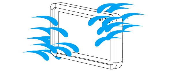 Защита от сильных водяных струй, падающих на прибор с любого направления (продолжительность испытаний — не менее 3 мин.) |