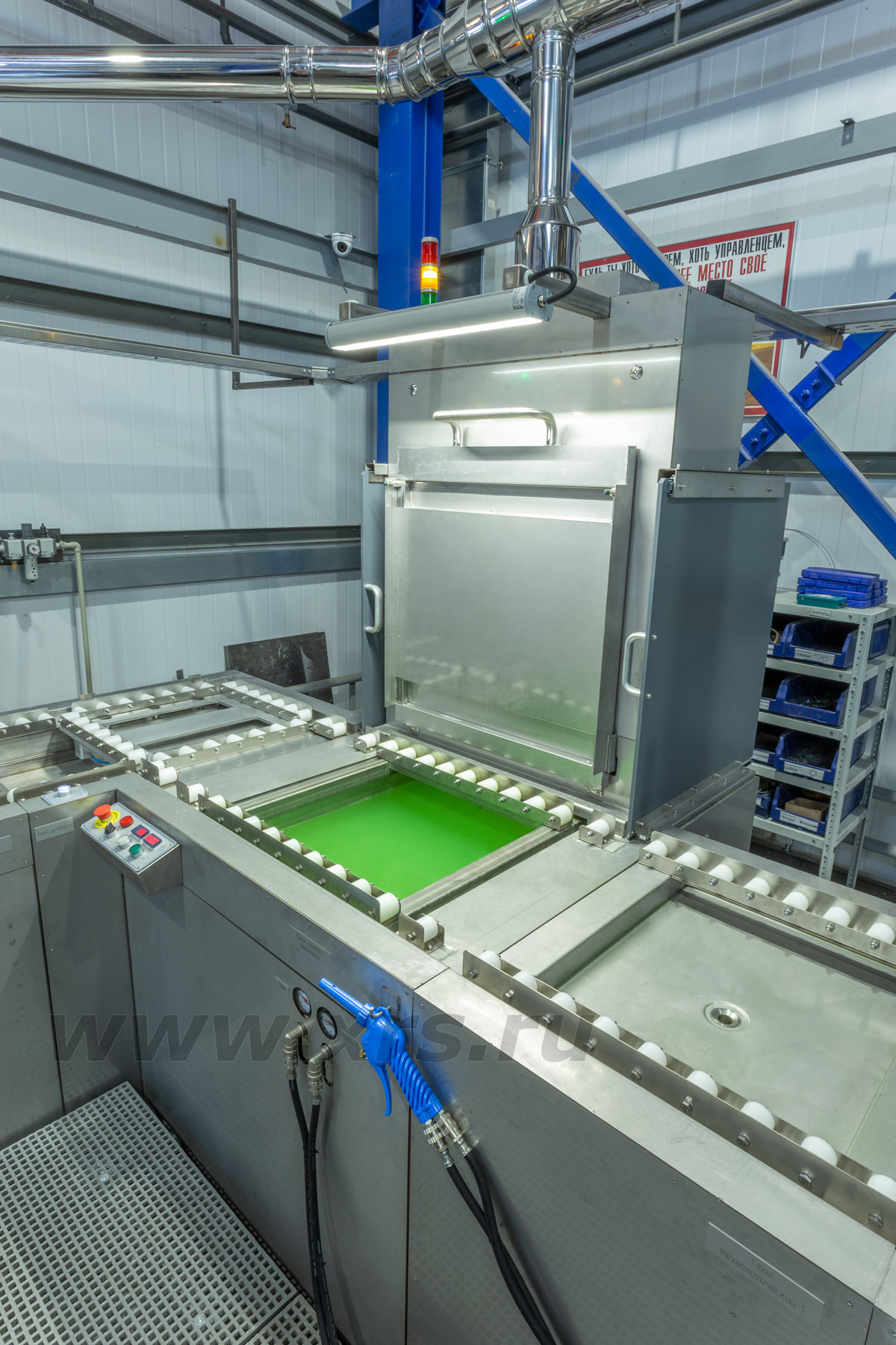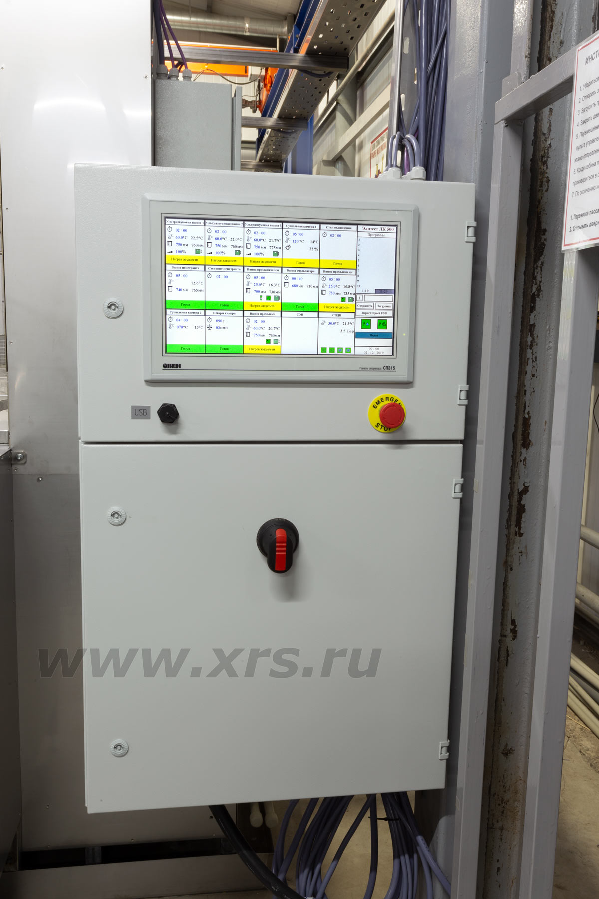 Управление работой линии осуществляется оператором в полуавтоматическом режиме с сенсорной панели, установленной в электрическом распределительном шкафу.