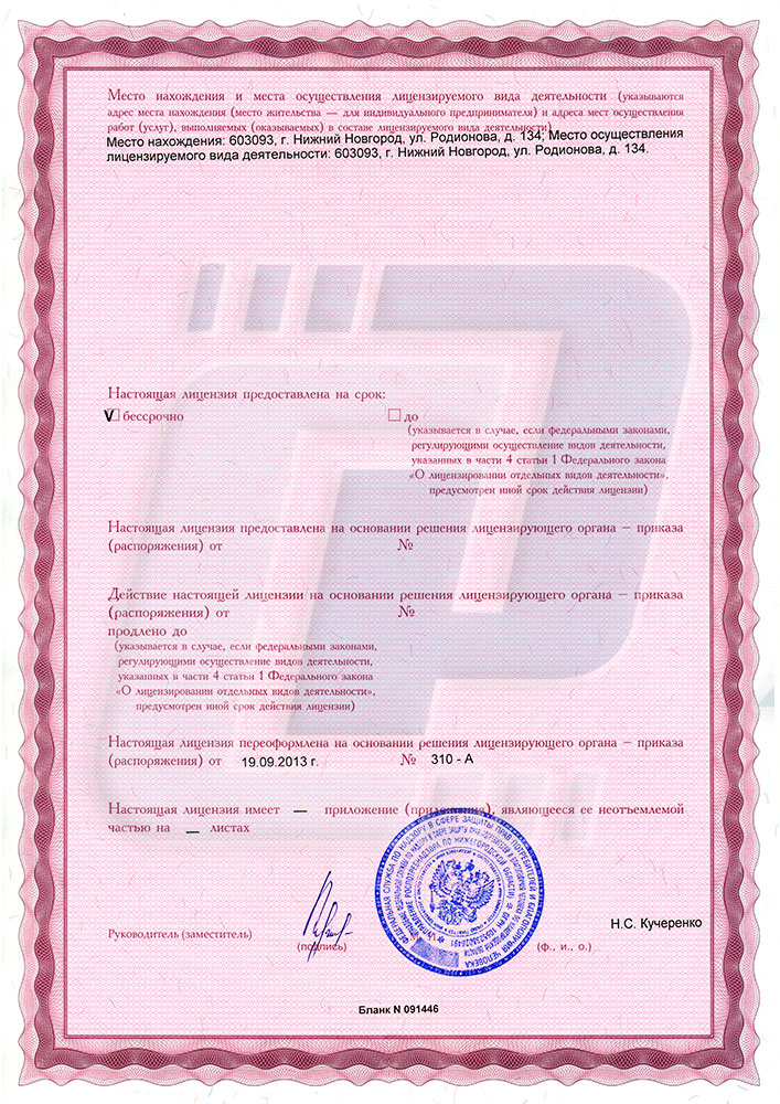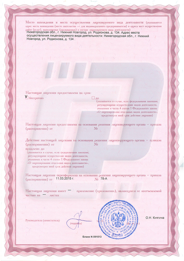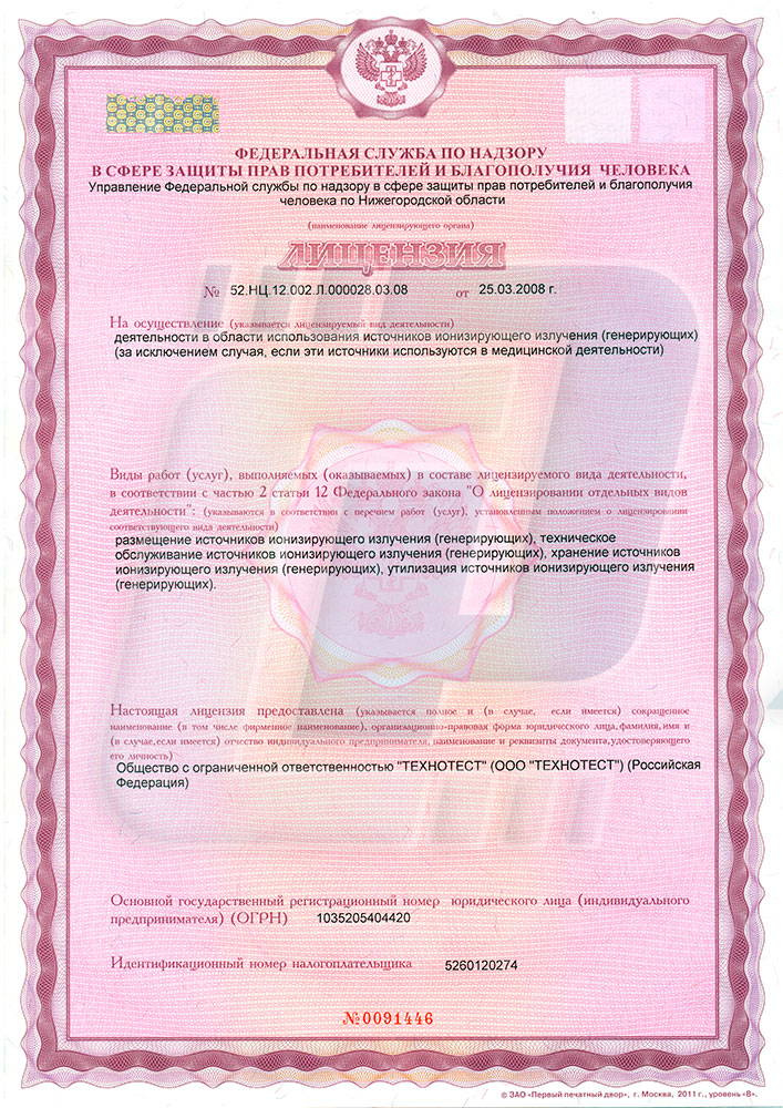 Лицензия компании «Технотест» на осуществление деятельности в области использования источников ионизирующего излучения (генерирующих) (за исключением случая, если эти источники используются в медицинской деятельности).
