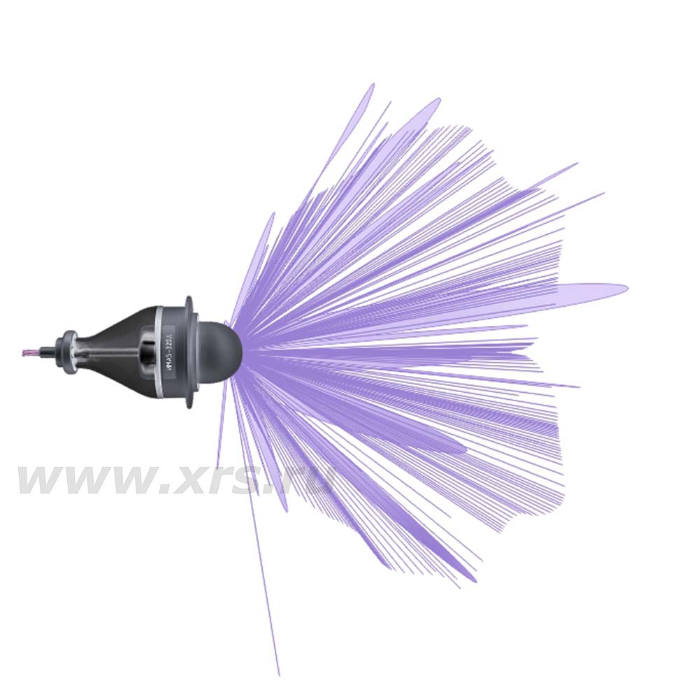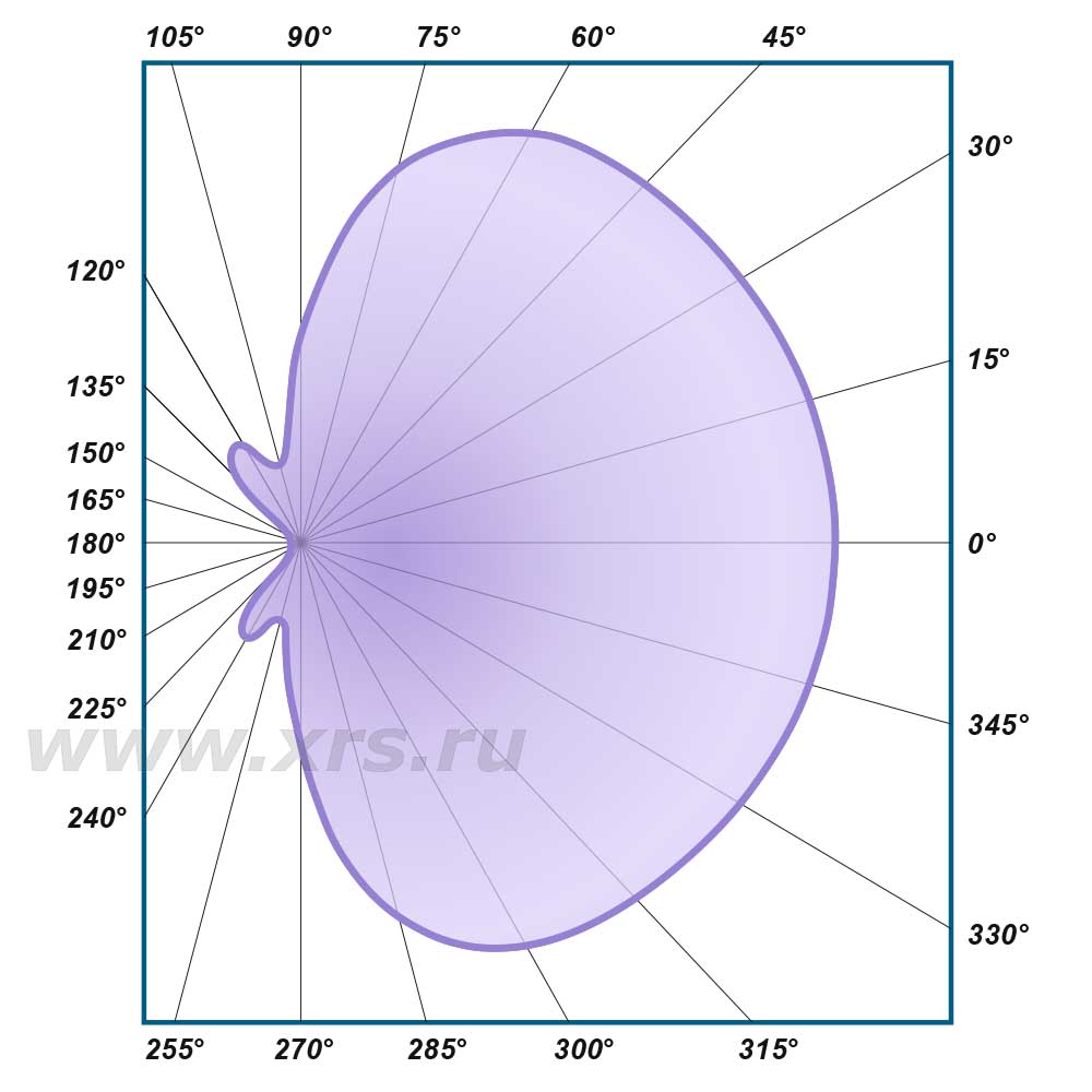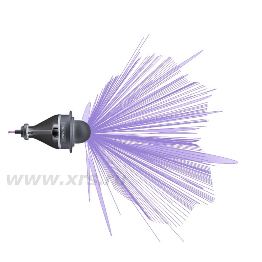 Известно, что излучатели рентгеновских аппаратов АРИОН, АРИНА и ПАМИР (далее аппараты) имеют достаточно широкий угол раскрытия пучка рентгеновского излучения. На рисунке с диаграммой показан поперечный срез телесного угла излучения, из которого видно, что угол раскрытия пучка, пусть и с потерей интенсивности излучения по краям, приближен к 180 градусам. Диаграмма отображает усреднённые значения интенсивности излучения импульсных рентгеновских трубок у аппаратов АРИОН, АРИНА, ПАМИР.