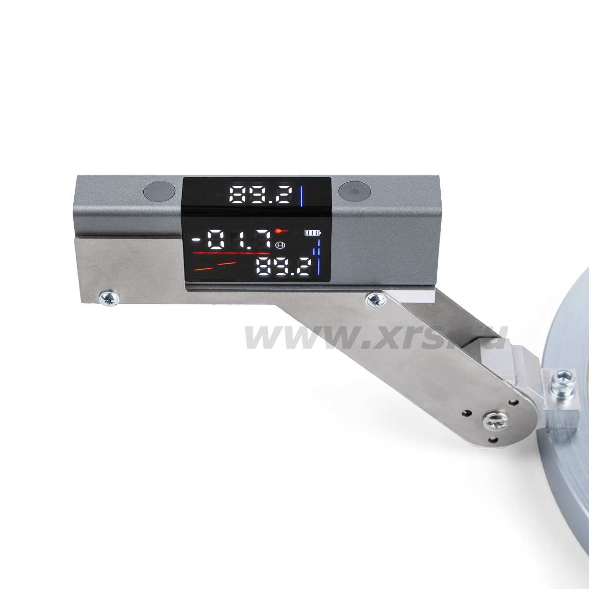 Для возможности позиционирования рентгеновского аппарата относительно уровня земли целеуказатель оснащен цифровым уровнем с двумя дисплеями.