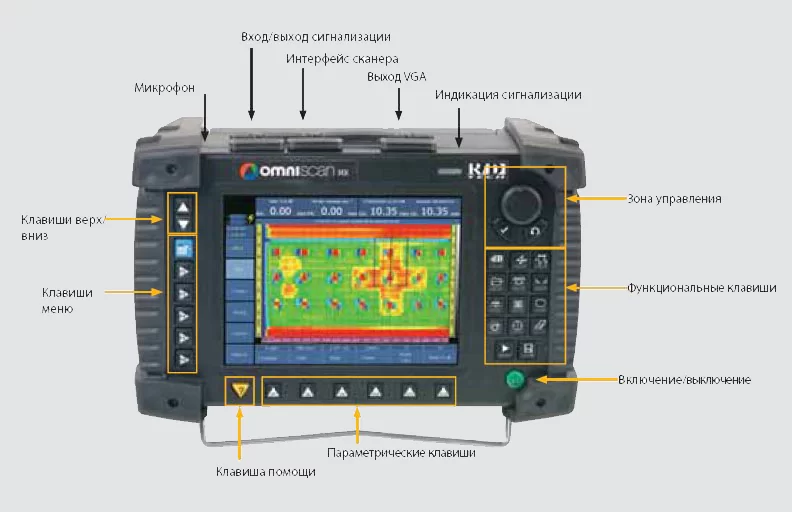 - Дисплей размером 213 мм с частотой обновления А-скана 60 Гц и разрашением 800 × 600 позволяет ясно видеть дефекты при любых условиях освещения.