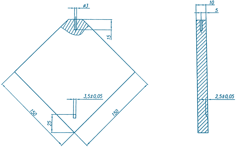 Образцы данного типа применяются при выполнении УЗК перекрестий сварных швов резервуаров совместно со специализированным устройством УП-1.