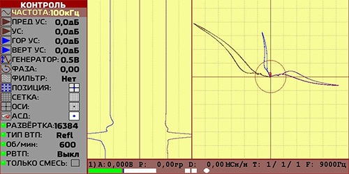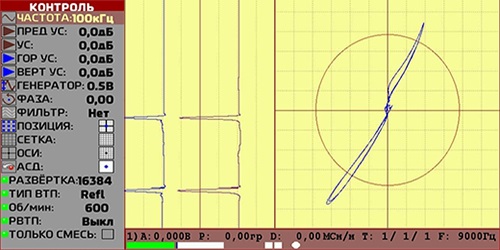 - Отображение вихретокового сигнала: комплексная плоскость (позволяет выделять дефекты на фоне помех путем анализа формы сигнала), создание смесей двух каналов (может применяться для подавления мешающих факторов и уменьшения их влияния на результаты контроля).