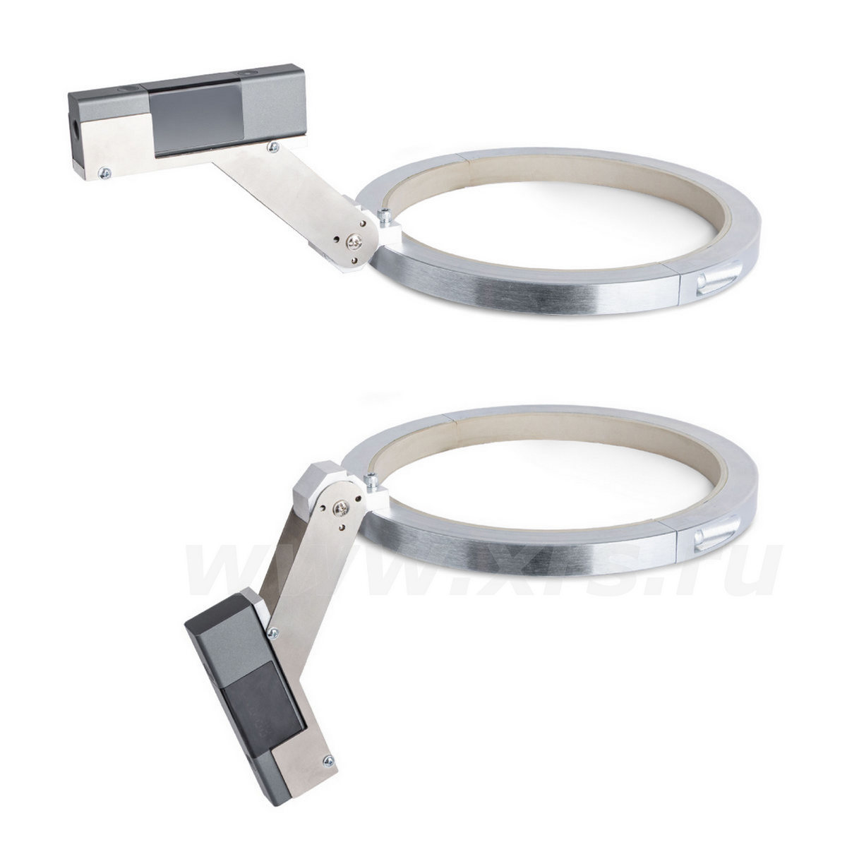 Для возможности позиционирования рентгеновского аппарата относительно уровня земли целеуказатель оснащен цифровым уровнем с двумя дисплеями.
