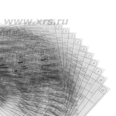 УШР-4 состоит из 11 шаблонов в виде прозрачной пленки размером 297×210 мм с нанесенными схематичными изображениями нормативных отрезков сварного шва и дефектов всех типов, предусмотренных ГОСТ 7512–82. Каждый предназначен для определенной толщины стенки* трубопровода: