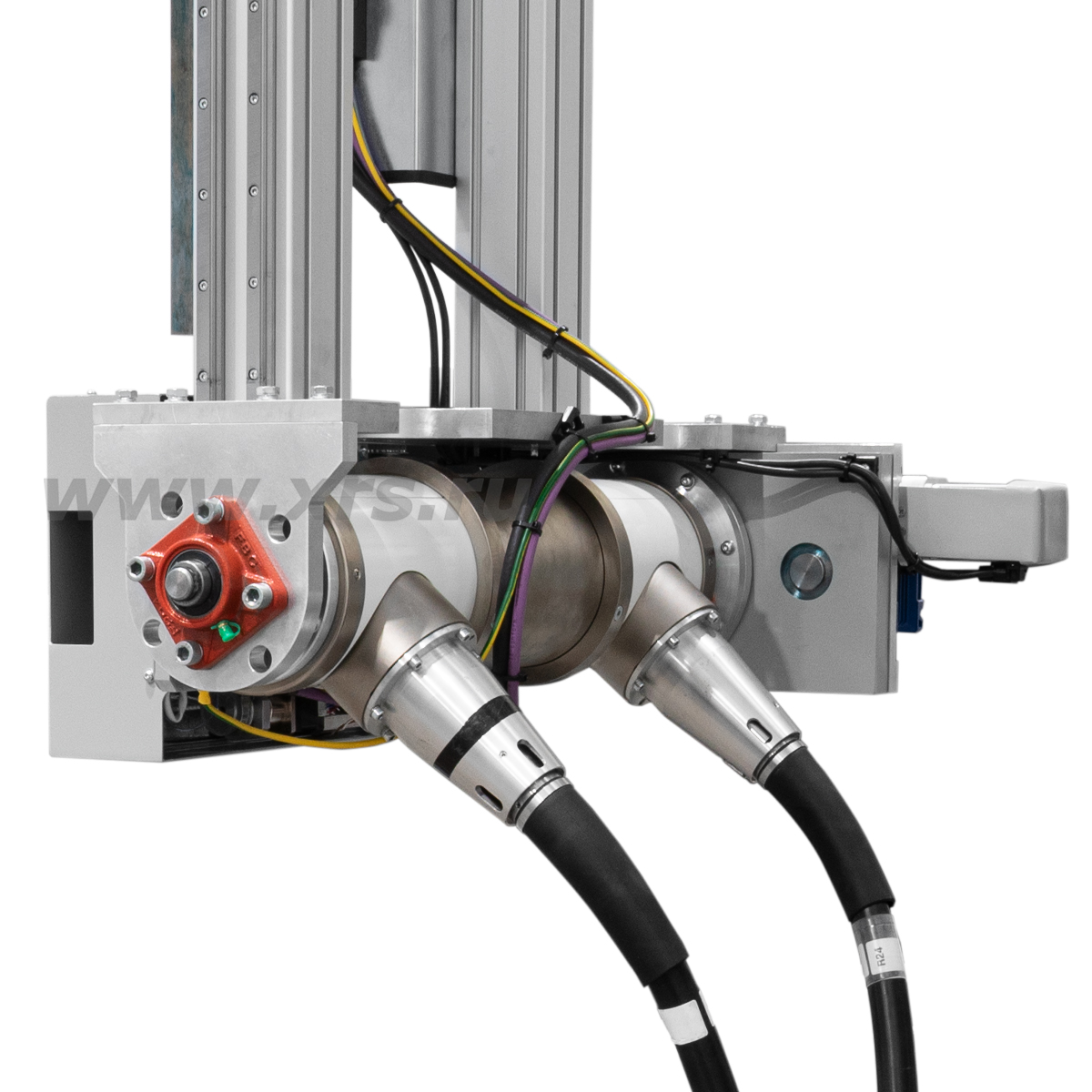 Манипулятор перемещения рентгеновской трубки. Манипулятор монтируется под потолком камеры на кронштейнах, вмонтированных в продольные стены. Манипулятор обеспечивает вертикальное (ось Yт) и горизонтальное (ось Zт) перемещение излучателя, а также его наклон на ±45° (ось Uт).