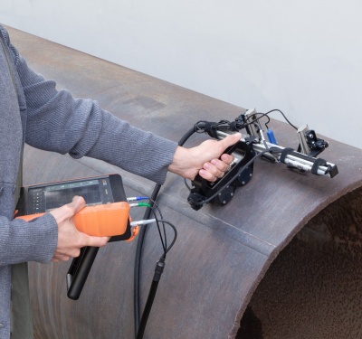 Ручной сканер PASCAN 2 используется для позиционирования преобразователей при ультразвуковом контроле кольцевых и продольных сварных соединений. Сканер позволяет располагать пару преобразователей друг напротив друга на необходимом расстоянии и тем самым контролировать сварной шов с двух сторон за один проход. Подходит для контроля труб диаметром от 89 мм и для плоских поверхностей. При использовании одного преобразователя сканер может использоваться для контроля объектов с односторонним доступом, например, угловых и уторных сварных швов.
